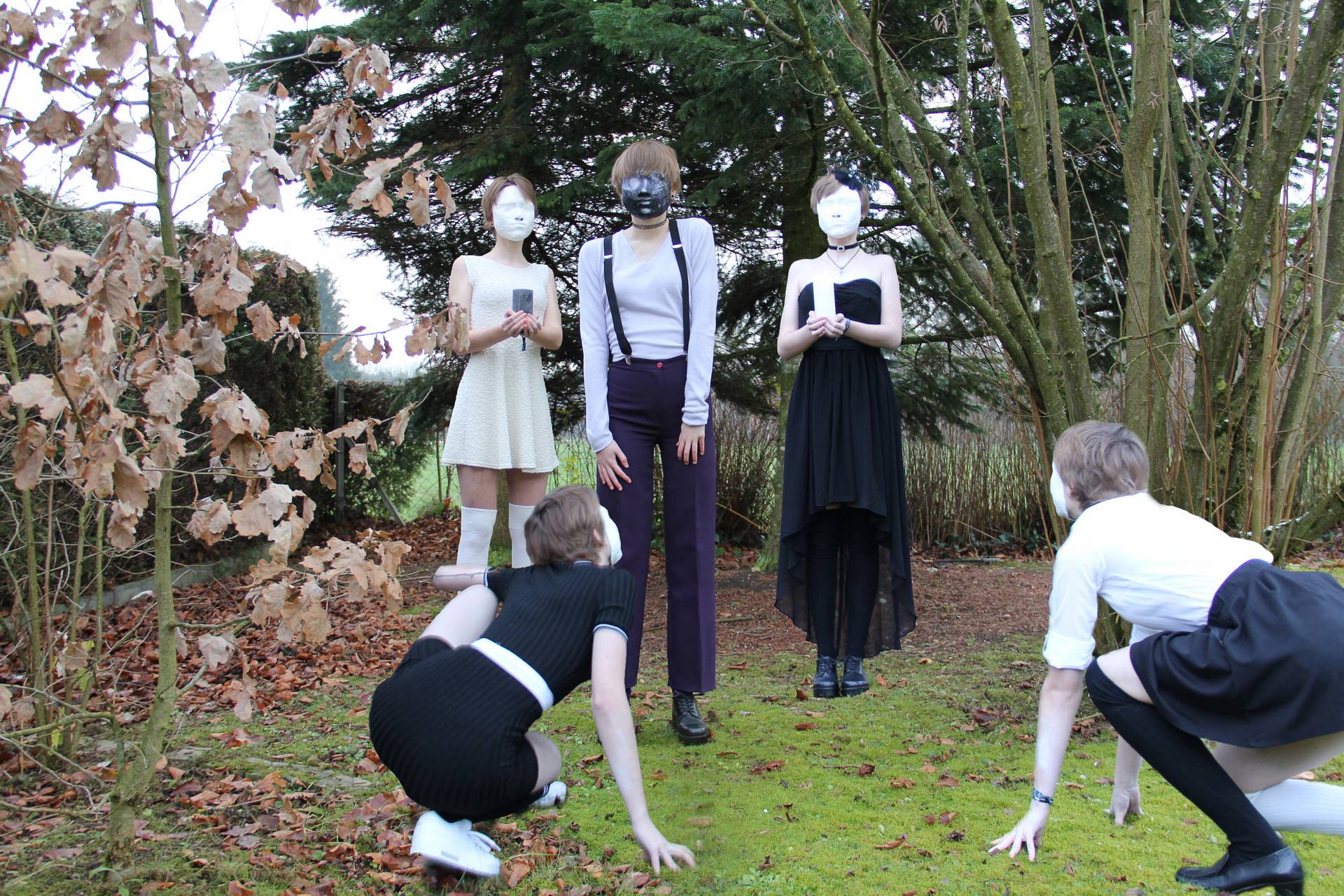 An einem Schauplatz nimmt eine Person verschiedene Rollen und Positionen ein, diese Situationen werden fotografisch festgehalten. Die freigestellten Figuren werden dann in eine Szene gesetzt, in der sie miteinander interagieren.