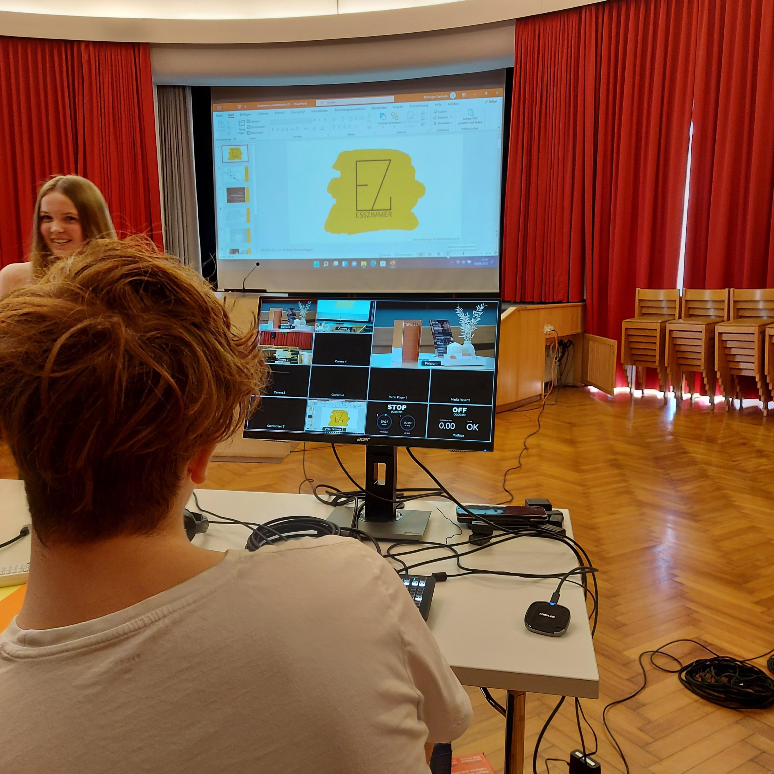April 2022: Der Festsaal der KSL verwandelte sich in einen Studioraum: Mischpult und Kameras waren in den Händen von Schüler:innen der 3. HLW Klassen. In Anlehnung an die Fernsehserie „2 Minuten 2 Millionen“ präsentierten insgesamt 20 Schülergruppen in einem zweiminütigen Pitch ihr fiktives Gastro-Unternehmen. Im Anschluss stellten sie sich den Fragen der Jury aus Lehrkräften und suchten um eine Unternehmensbeteiligung an. Die originellsten Unternehmen wurden mit einem 20€ Bistrogutschein belohnt.