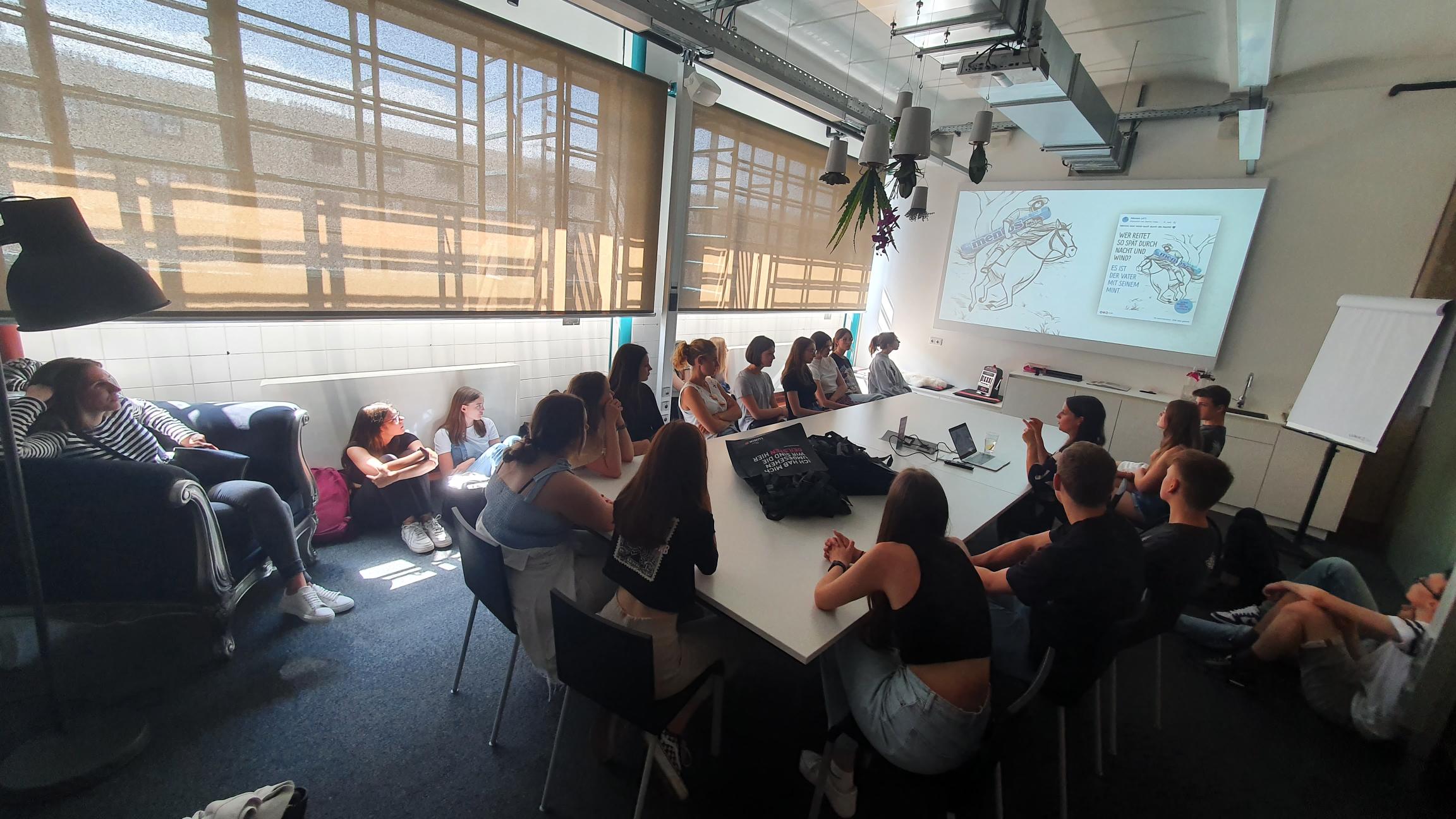 Endlich sind wieder Lehrausgänge möglich – so tauschten die SchülerInnen die Schulbank gegen einen Platz im stylischen Büro der bekannten Linzer Werbeagentur „Lunik2“. Zu Beginn gab es eine Führung durch die Büroräumlichkeiten, welche sich im 3. OG der Tabakfabrik befinden. Die Kraft der Kreativität wird bereits bei der Einrichtung sichtbar und spürbar.